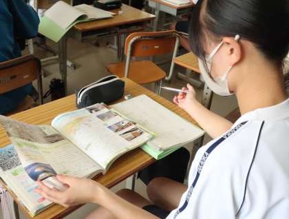 「過疎化を防ぐためにはどうしたらよいだろう」をテーマに学習が進められていました。