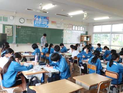 2年1組の社会・地理分野の授業の様子です。