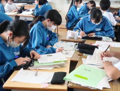 交通・通信網の課題について、「過疎化」「島の暮らし」「山間地の暮らし」などにテーマを絞って学習が進められていました。