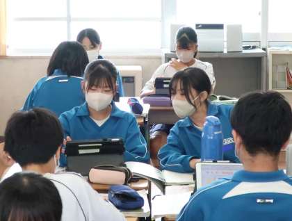 2年1組の社会・地理分野の授業の様子です。