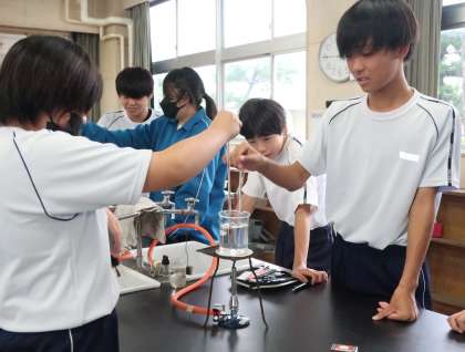 9/24 1-1 状態変化を調べる実験 4 公開日 2024/09/24 更新日 2024/09/24 各学年から 1年1組の理科の授業の様子です。 エタノールを加熱して、状態変化を調べる実験に取り組んでいました。