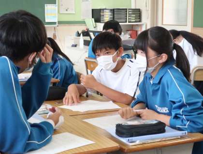2年5組の数学の授業の様子です。 一次関数のグラフのかき方について学んでいました。