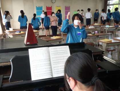 2年2組の音楽の授業の様子です。 合唱コンクールに向けてパート練習に取り組んでいました。