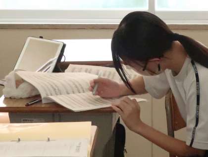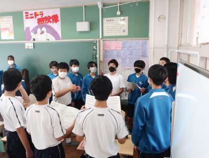 パートごとに音取りをしています。すでに合唱隊形で練習をしているクラスもありました。