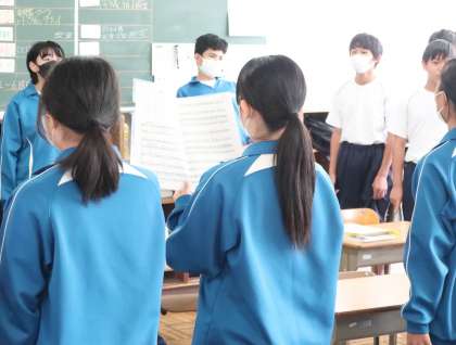 パートごとに音取りをしています。すでに合唱隊形で練習をしているクラスもありました。