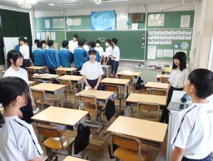 写真は、朝の合唱タイム・3年生の様子です。