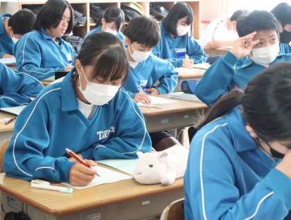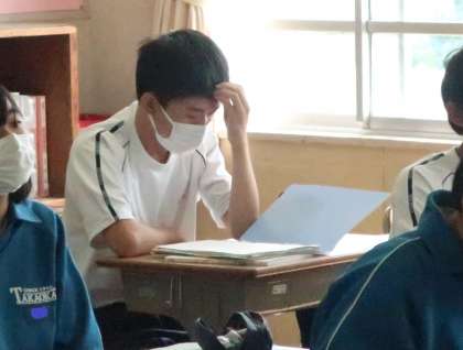 「二元一次方程式のグラフをかこう」をテーマに学習が進められていました。