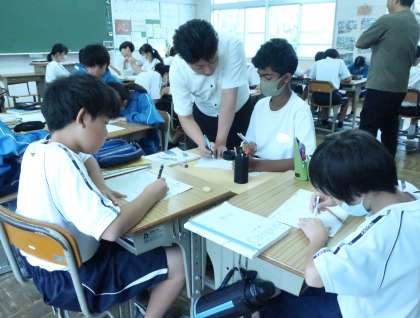 方程式の学習で、仲間の解き方も参考にしながら、様々なパターンの演習問題に挑戦していました。