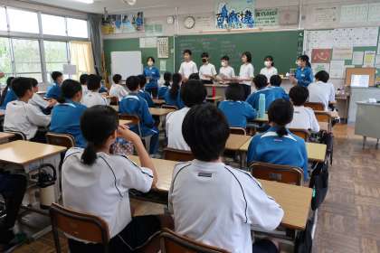 パート練習、全体での音程・表情・姿勢などの確認などに取り組んでいたほか、3年生が1年生に「合唱の極意・合唱コンに向けての練習の仕方」などをレクチャーしていました。