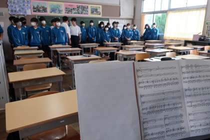 パート練習、全体での音程・表情・姿勢などの確認などに取り組んでいたほか、3年生が1年生に「合唱の極意・合唱コンに向けての練習の仕方」などをレクチャーしていました。