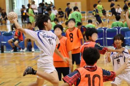 写真は、豊田市運動公園体育館で行われた男子ハンドボール部の大会の様子です。予選リーグで3校と対戦し、2勝1敗。3校が同じ勝率でしたが、得失点差で惜しくも3位に。決勝トーナメントに進むことはできませんでしたが、手応えを感じることができた大会となりました。