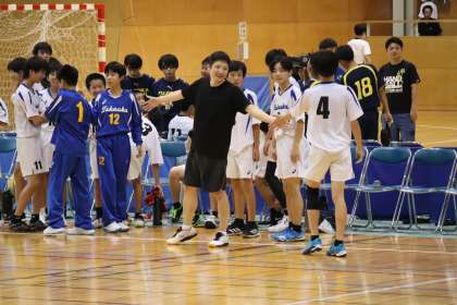 写真は、豊田市運動公園体育館で行われた男子ハンドボール部の大会の様子です。予選リーグで3校と対戦し、2勝1敗。3校が同じ勝率でしたが、得失点差で惜しくも3位に。決勝トーナメントに進むことはできませんでしたが、手応えを感じることができた大会となりました。