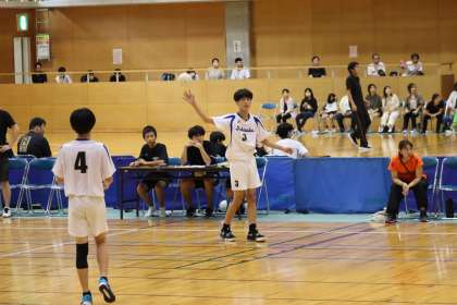 写真は、豊田市運動公園体育館で行われた男子ハンドボール部の大会の様子です。予選リーグで3校と対戦し、2勝1敗。3校が同じ勝率でしたが、得失点差で惜しくも3位に。決勝トーナメントに進むことはできませんでしたが、手応えを感じることができた大会となりました。