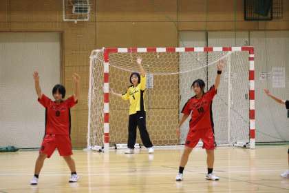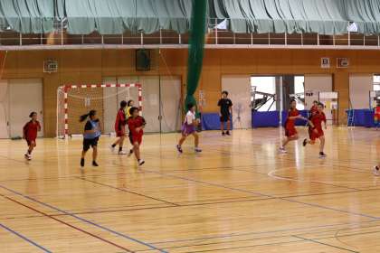 写真は、豊田市運動公園体育館で行われた女子ハンドボール部の大会の様子です。笑顔でのプレーを忘れず練習の成果を発揮し、準優勝の輝きました。