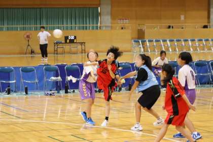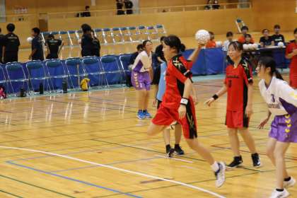 写真は、豊田市運動公園体育館で行われた女子ハンドボール部の大会の様子です。笑顔でのプレーを忘れず練習の成果を発揮し、準優勝の輝きました。