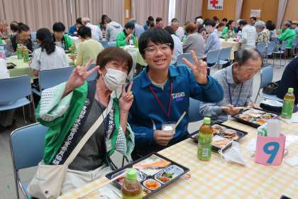 ジュニアクラブより3年生の15名がボランティアスタッフとして参加しました。高齢者の方々との楽しいお話、ゲームなどを行ったほか、会場への誘導、昼食の配布なども積極的に行っていました。