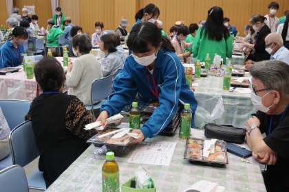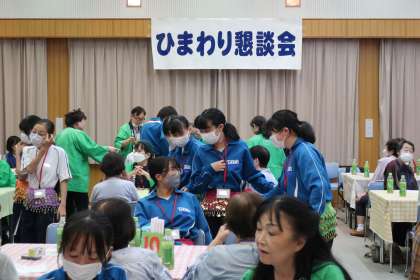 ジュニアクラブより3年生の15名がボランティアスタッフとして参加しました。高齢者の方々との楽しいお話、ゲームなどを行ったほか、会場への誘導、昼食の配布なども積極的に行っていました。