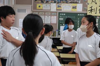 朝の活動時に行われた「たかまるタイム(第19回)」・1年生の様子です。