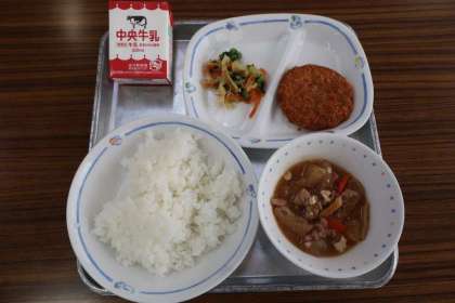だいこんと豚肉の煮物、こまつなのおひたし、和風コロッケ、ごはん、牛乳 でした。