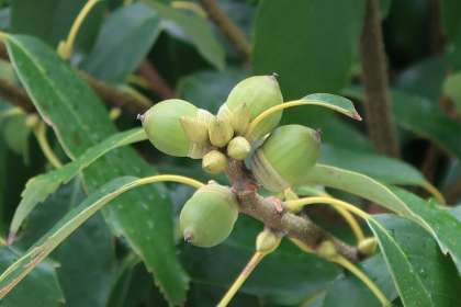 校内では、かわいらしいどんぐりが木に付いている様子を見かけます。木の種類によってどんぐりの形が違うため、見比べてみるのも楽しいかもしれません。