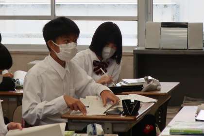 2年1組の社会・地理分野の授業の様子です。 関東地方の特徴について学んでいました。