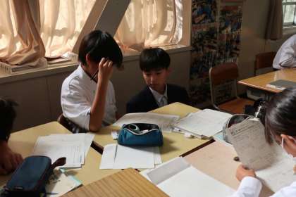 比例・反比例に関する学習のまとめのプリントに取り組んでいました。
