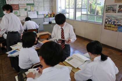 「古典の特徴を挙げたり、感想を交流しよう」をテーマに学習が進められていました。