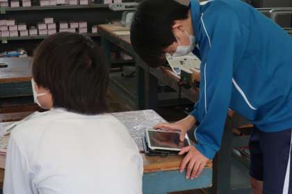 ダイナモラジオづくりで、電子回路などの組み立てがおおよそ完了したため、防災時にも役立つよう目立つデザインとQRコードの製作に取りかかっていました。