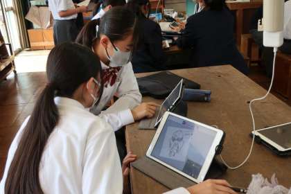 ダイナモラジオづくりで、電子回路などの組み立てがおおよそ完了したため、防災時にも役立つよう目立つデザインとQRコードの製作に取りかかっていました。