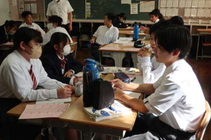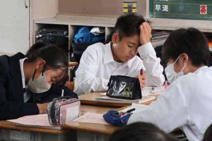 比例・反比例の学習もいよいよ文章問題に入って難易度が上がった分、仲間との意見交換も活発になっていました。