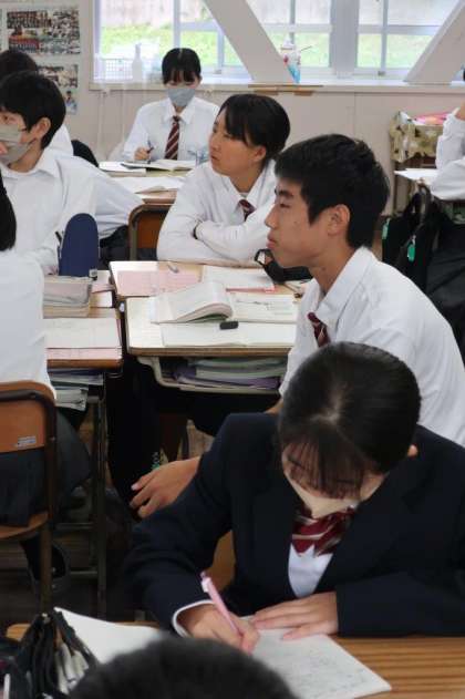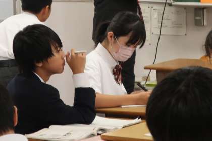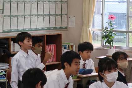 比例・反比例の学習もいよいよ文章問題に入って難易度が上がった分、仲間との意見交換も活発になっていました。