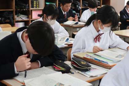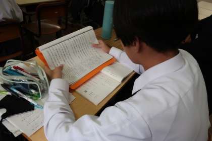 古文の学習で「蓬莱の玉の枝(竹取物語より)」の音読に取り組んでいました。