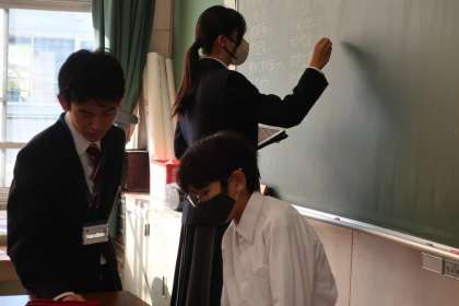 大きな行事を終え、「学級を振り返り、集団の質を高めよう」をテーマに、クラスのレベルアップに向けて仲間と意見交換を行っていました。
