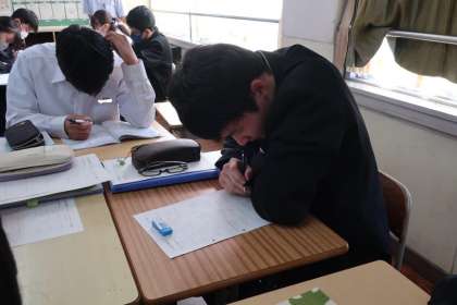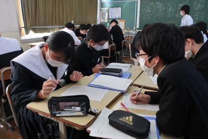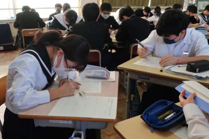 円周角、二次方程式… 定期テストに出題範囲の対策プリントの問題をどんどん解いていきます。「調子出てきたー!」の言葉に頼もしさを感じました。