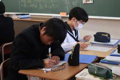 11/11 3-2 調子出てきたー! 2 公開日 2024/11/11 更新日 2024/11/11 各学年から 3年2組の数学の授業の様子です。 円周角、二次方程式… 定期テストに出題範囲の対策プリントの問題をどんどん解いていきます。「調子出てきたー!」の言葉に頼もしさを感じました。