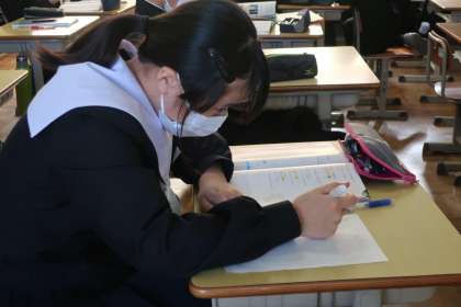定期テストに向け、出題範囲の総復習に取り組んでいました。