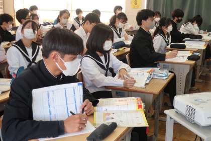 11/13 3-3 英文読解 3 公開日 2024/11/13 更新日 2024/11/13 各学年から 3年3組の英語の授業の様子です。 一文ずつ丁寧に読み込み、内容や文法の両方を整理して学習していました。