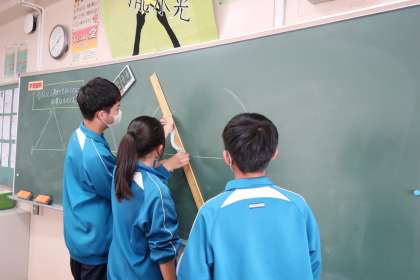 「合同な図形をかくための条件」をテーマに、三角形の合同条件で必要な事項を探していました。