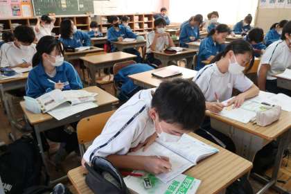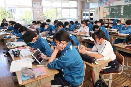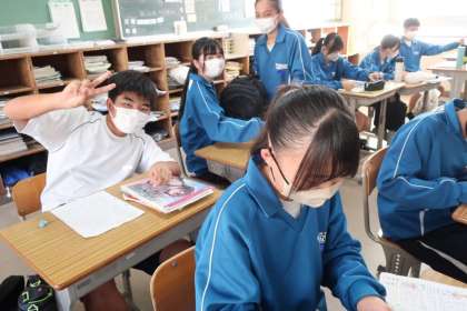 2年生の教育相談と並行して行われているテストに向けての学習の時間の様子です。