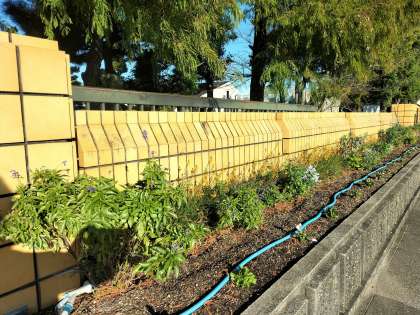 (苗の植え替えをしてくださった公務手さん、ボランティアの生徒たちに感謝しています)