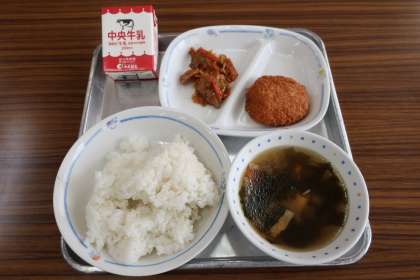 11/21 今日の給食 公開日 2024/11/21 更新日 2024/11/21 特別活動 今日の献立は ————— わかめスープ、豚肉とキムチのみそ炒め、いかカツ、ごはん、牛乳 でした。 *エネルギー:794kcal たんぱく質:30.2g