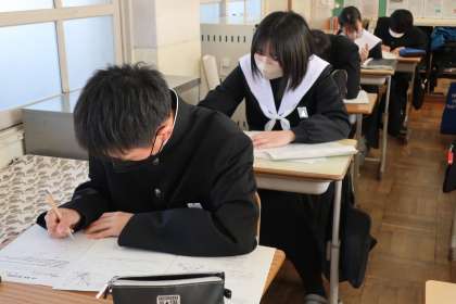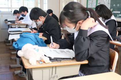 11/21 3-2 受験に向けて 2 公開日 2024/11/21 更新日 2024/11/21 各学年から 3年2組の数学の授業の様子です。 定期テストが返却され、点が取れなかった問題の解き直しに取り組んでいました。