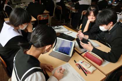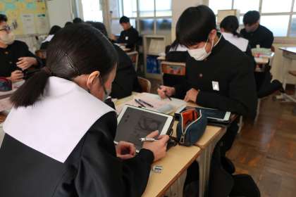 中学校生活最後の作品づくりとなる万年カレンダーに入れる点描画のデザインを考えていました。