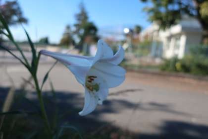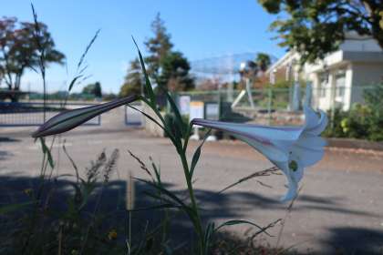 ユリの花です。一般的には5〜7月頃に咲くイメージですが、特に変わった品種でもなさそうなため、やはり異常気象が原因でしょうか。校内でも桜の花数が次第に増えています。