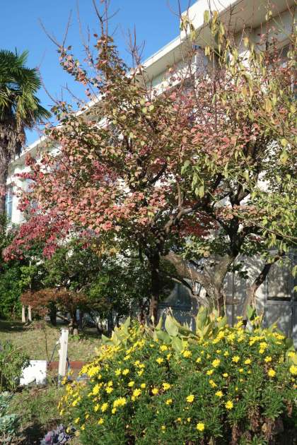 本校では、校内の至る所で色づいていく葉の様子を見ることができます。天気の良い日は、青空と相まって、とてもきれいに見えます。
