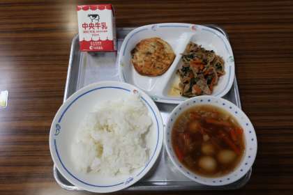 11/26 今日の給食 公開日 2024/11/26 更新日 2024/11/26 特別活動 今日の献立は ————— はるさめスープ、ビビンバ丼、チヂミ、ごはん、牛乳 でした。 *エネルギー:805kcal たんぱく質:29.5g