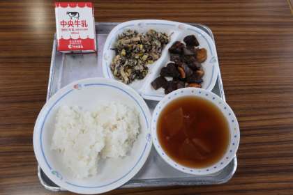 八杯汁、骨太サラダ、レバーとこんにゃくの甘辛煮、ごはん、牛乳 でした。