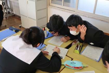 「円周角の定理」の発展問題に挑戦していました。仲間同士の教え合いも活発に行われていました。
