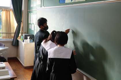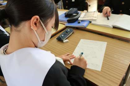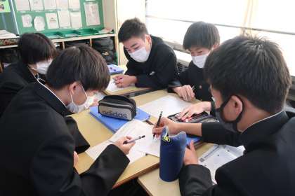 「円周角の定理」の発展問題に挑戦していました。仲間同士の教え合いも活発に行われていました。