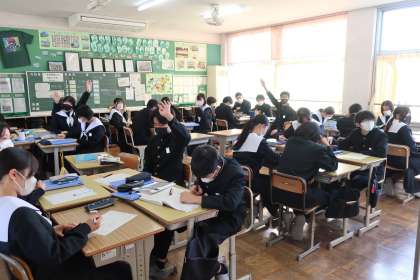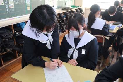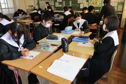 「円周角の定理」の発展問題に挑戦していました。仲間同士の教え合いも活発に行われていました。